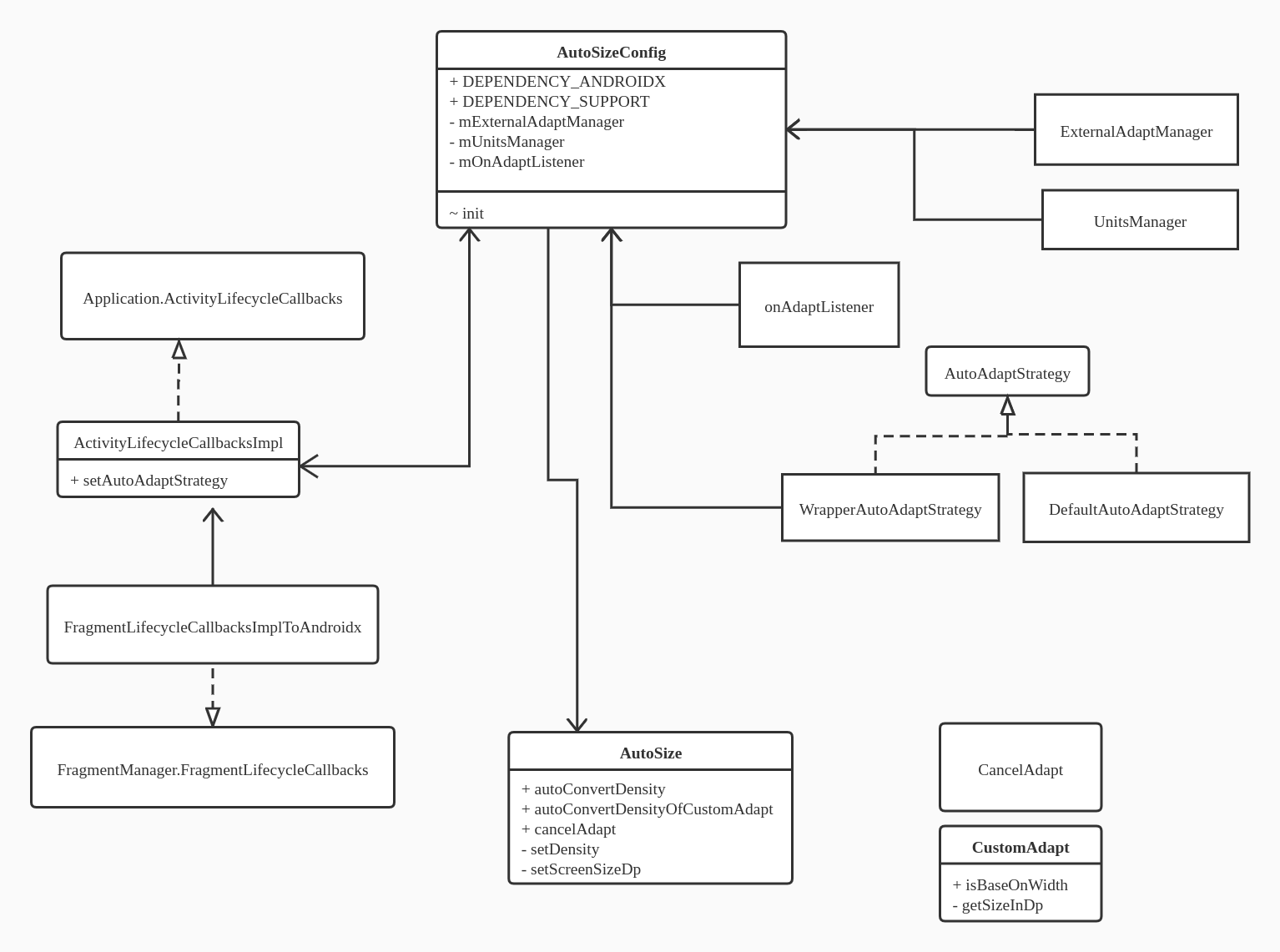 - WrapperAutoAdaptStrategy实现了AutoAdaptStrategy接口,在AutoSizeConfig#init和AutoSizeConfig#setAutoAdaptStrategy被调用